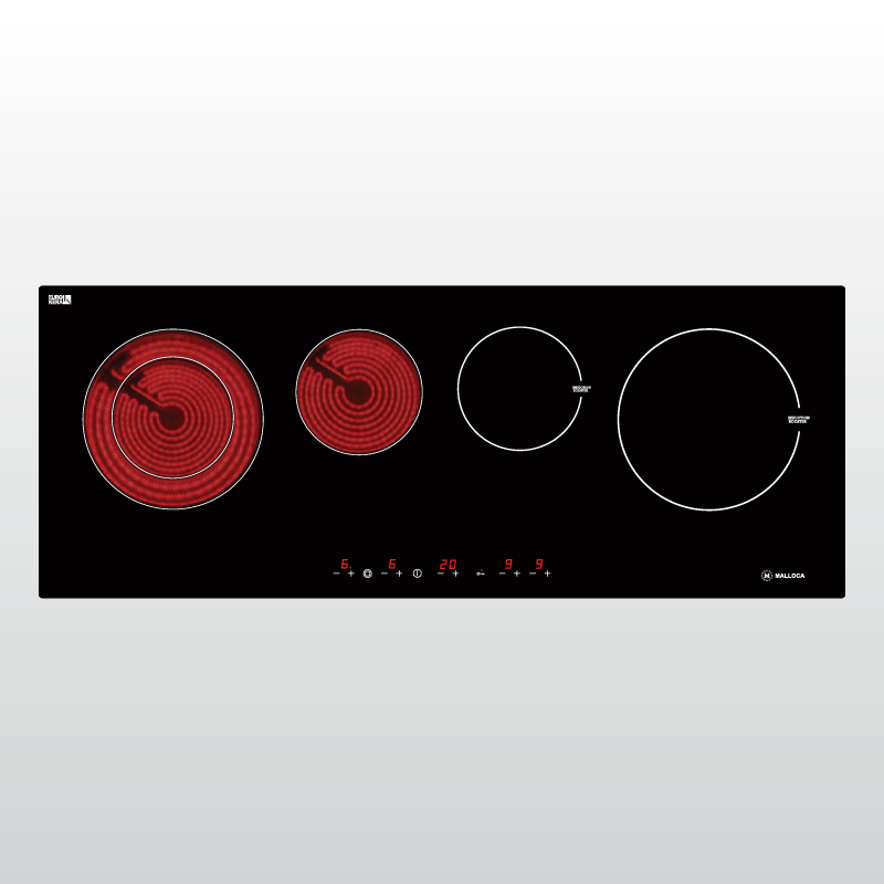 - Thiết kế lắp đặt âm gồm 4 vùng nấu: 2 điện 2 từ