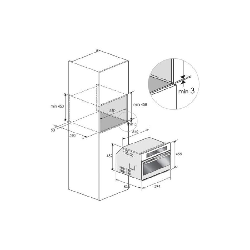 – Kích thước lắp đặt (dài, rộng, sâu): 560 x 458 x 560mm.