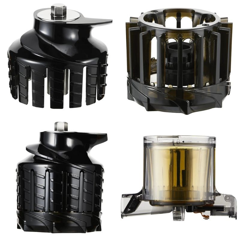- Lưới ép được tích hợp vào bên trong khoang ép, đường ống dẫn nước ép còn có nắp chặn giúp tránh được tình trạng nhiễu giọt sau khi ép. Đi kèm sản phẩm còn có ca đựng nước ép và bàn chải vệ sinh tiện lợi.