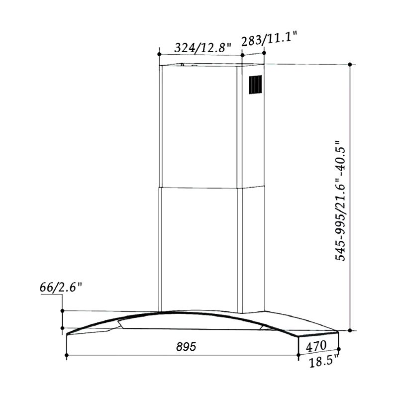 Kích thước máy hút mùi áp tường Canzy CZ 1890