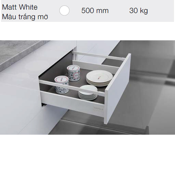 Thông số kĩ thuật của ray hộp Hafele Alto-S H80 mm chức năng nhấn mở màu trắng 552.55.716